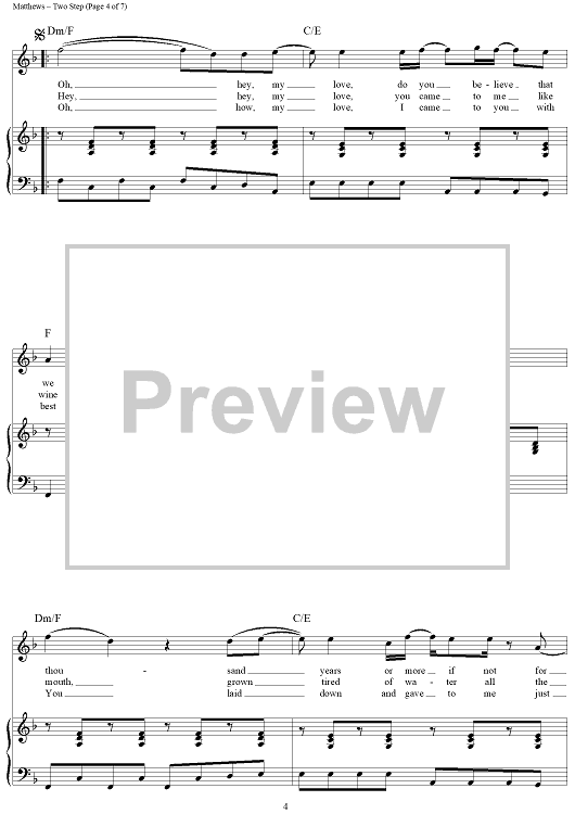 Digital Sheet Music for Two Step by Dave Matthews Band, Dave Matthews scored for Piano/Vocal/Chords; id:452299