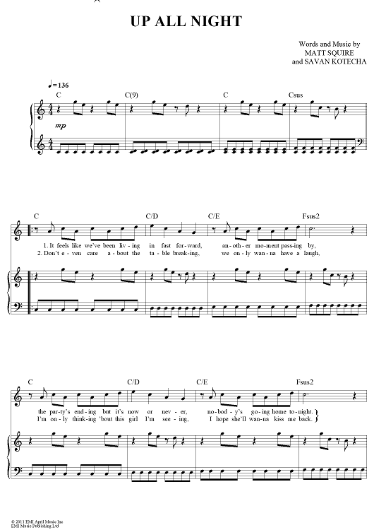 Digital Sheet Music for Up All Night by Savan Kotecha, One Direction, Matt Squire scored for Piano/Vocal/Chords; id:430135