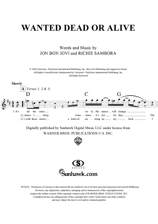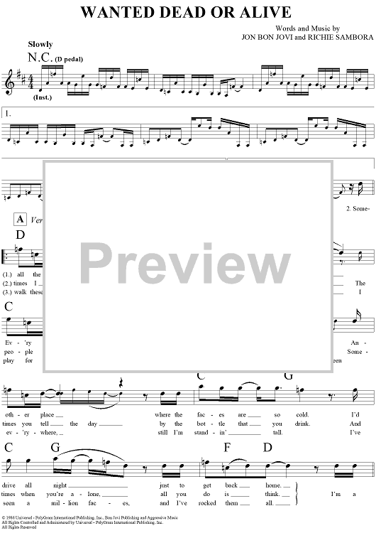 "Wanted Dead or Alive" Sheet Music by Bon Jovi