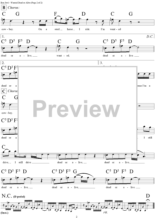Digital Sheet Music for Wanted Dead or Alive by Bon Jovi, Richie Sambora, Jon Bon Jovi scored for Lead Sheet; id:293813