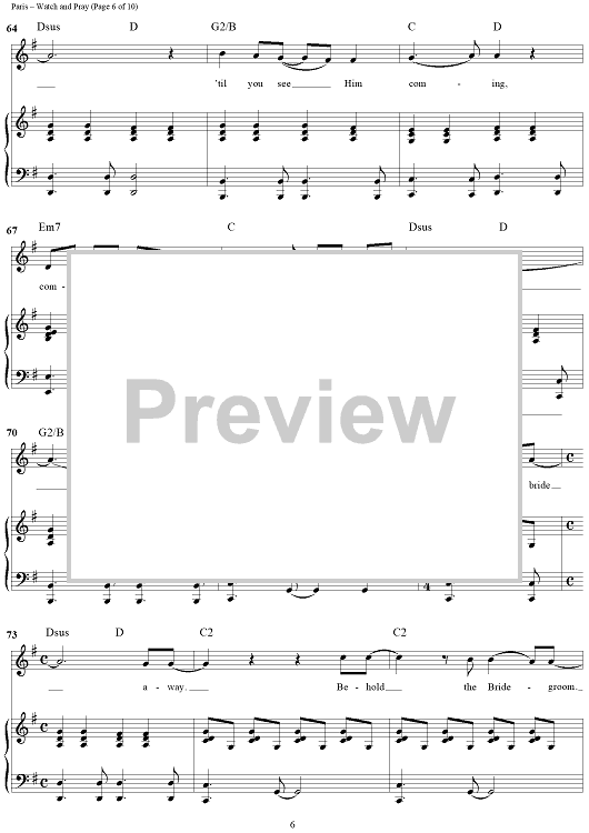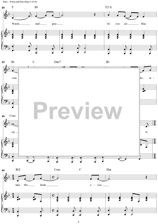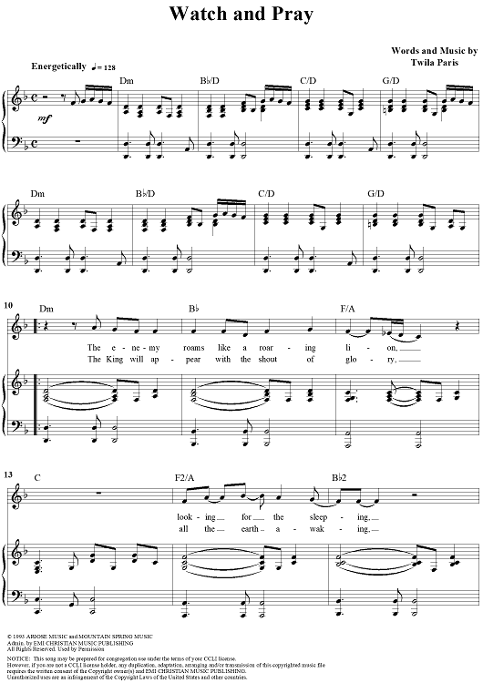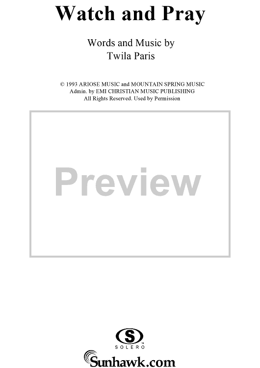Digital Sheet Music for Watch and Pray by Twila Paris scored for Piano/Vocal/Chords; id:113827