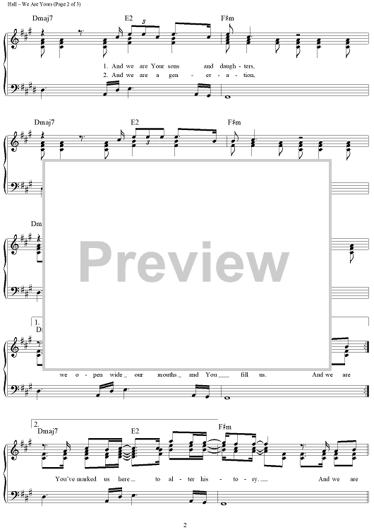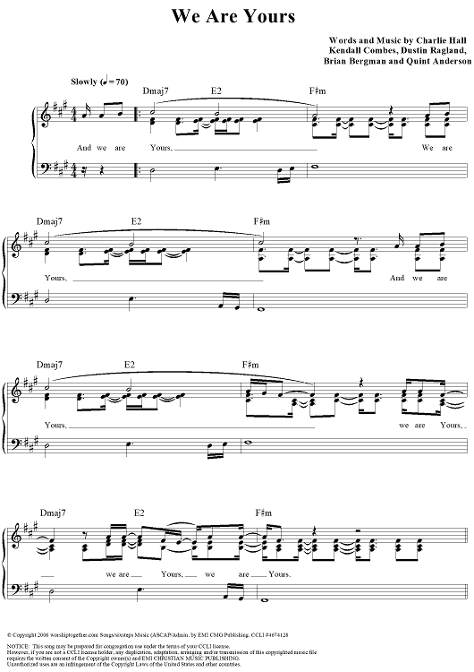 Digital Sheet Music for We Are Yours by Charlie Hall, Kendall Combes, Dustin Ragland, Brian Bergman, Quint Anderson scored for Piano/Vocal/Chords; id:319994