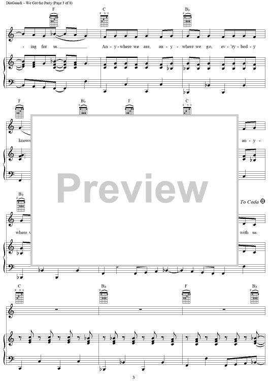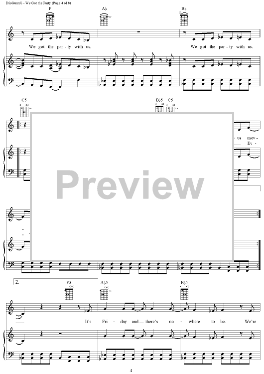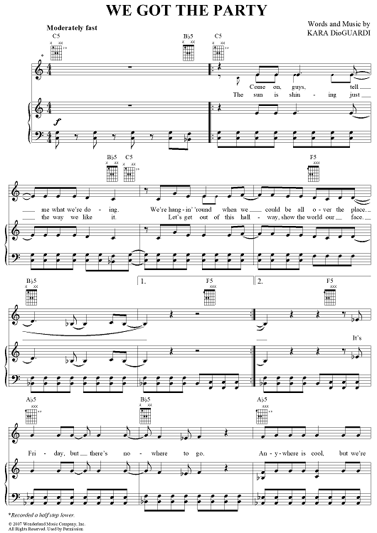 Digital Sheet Music for We Got the Party by Kara DioGuardi, Hannah Montana, Miley Cyrus scored for Piano/Vocal/Chords; id:366991