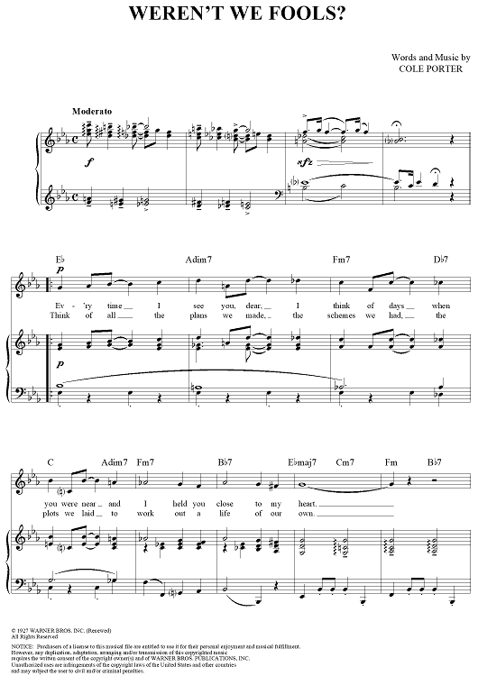 Digital Sheet Music for Weren't We Fools? by Fanny Brice, Cole Porter scored for Piano/Vocal/Chords; id:321016