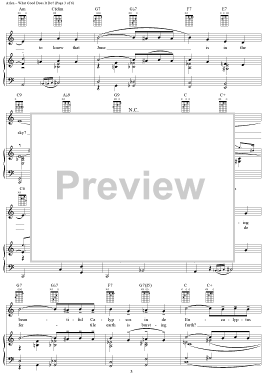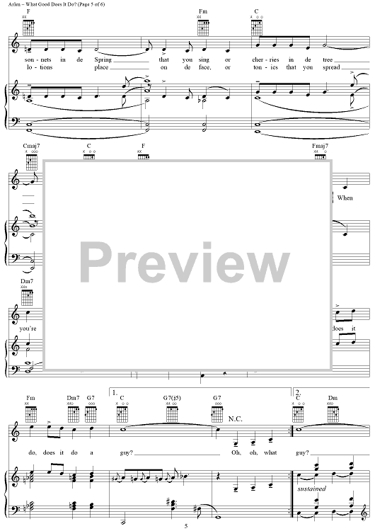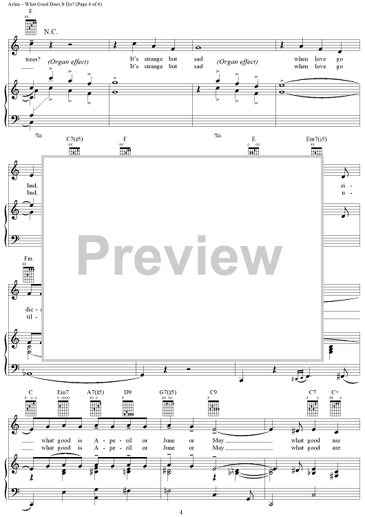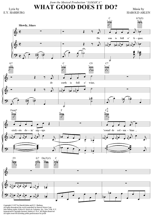 Digital Sheet Music for What Good Does It Do? by Harold Arlen, E.Y. "Yip" Harburg scored for Piano/Vocal/Chords; id:366045
