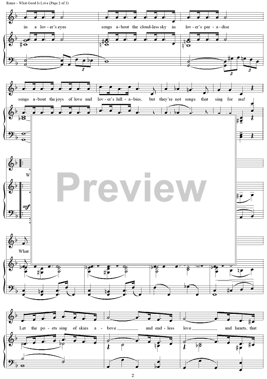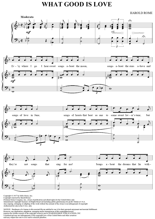 Digital Sheet Music for What Good Is Love by Harold Rome scored for Piano/Vocal; id:315955
