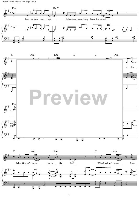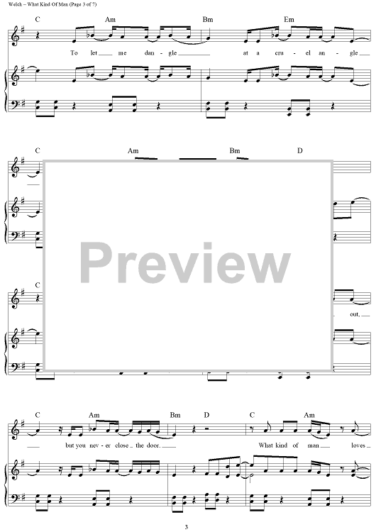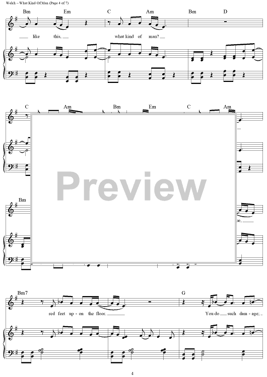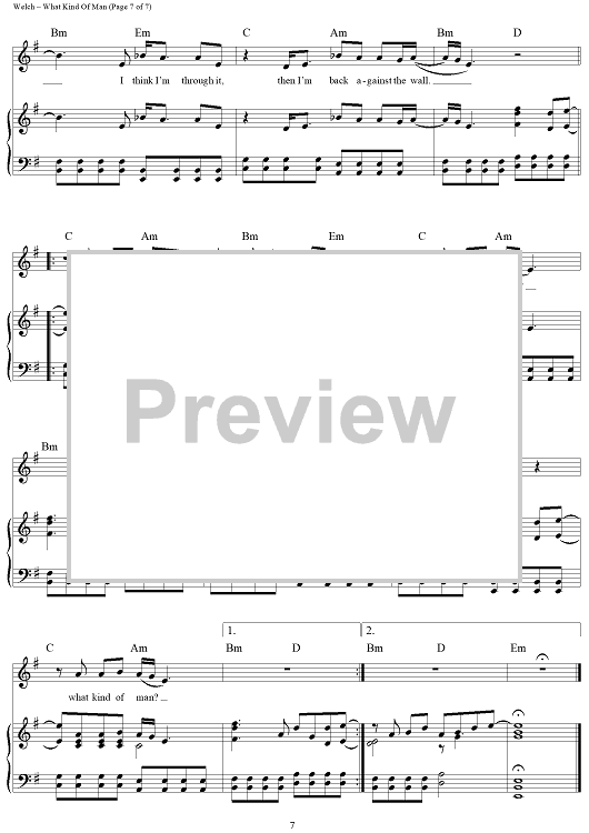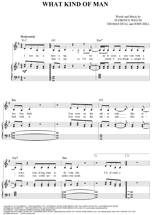 Digital Sheet Music for What Kind Of Man by John Hill, Florence Welch, Florence and the Machine, Thomas Hull scored for Piano/Vocal/Chords; id:448719