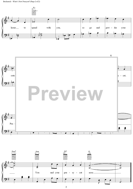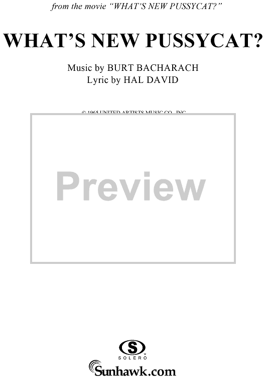 Digital Sheet Music for What's New Pussycat? by Hal David, Burt Bacharach, Tom Jones scored for Piano/Vocal/Chords; id:116225