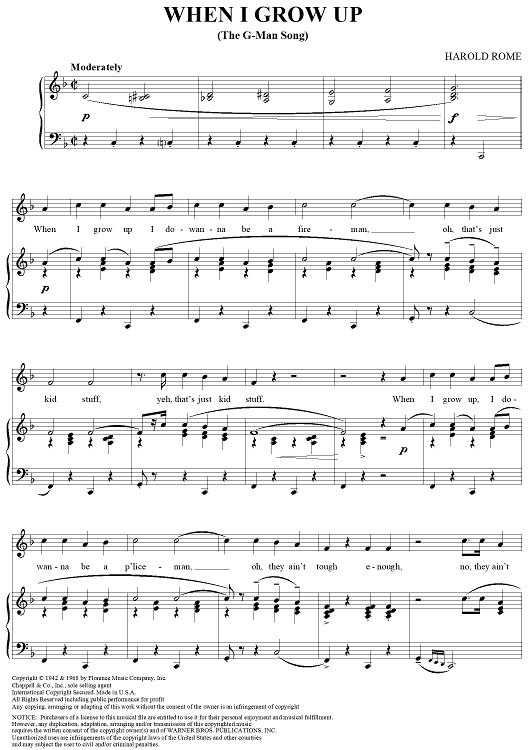 "When I Grow Up (The G-Man Song)" Sheet Music by Harold Rome