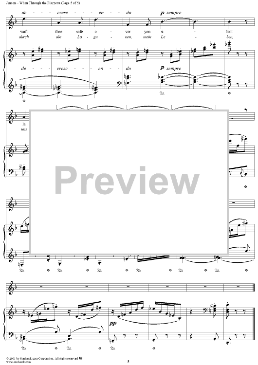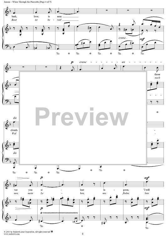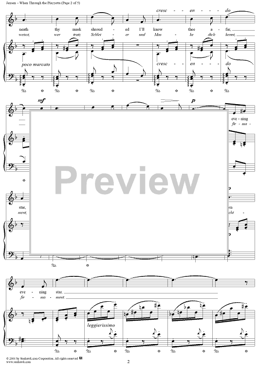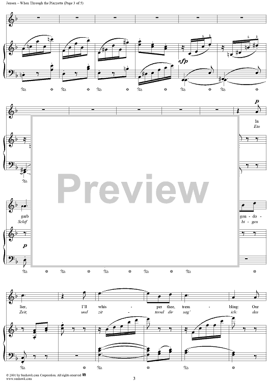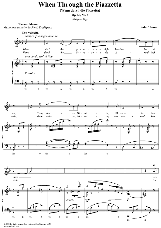 Digital Sheet Music for When Through the Piazzetta by Adolf Jensen, Thomas Moore scored for Piano/Vocal; id:269720