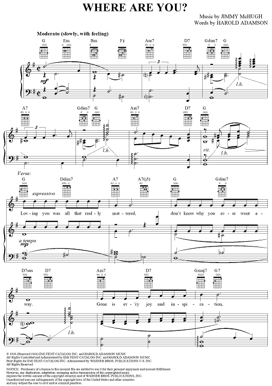 "Where Are You?" Sheet Music by Jimmy McHugh