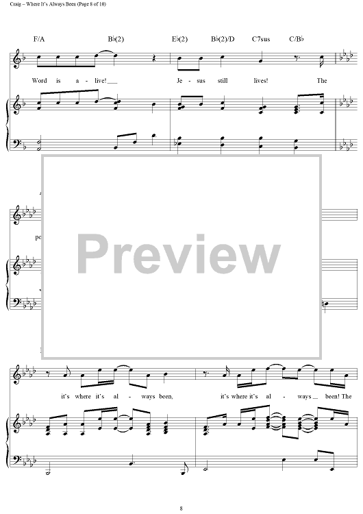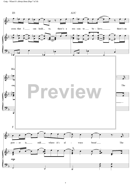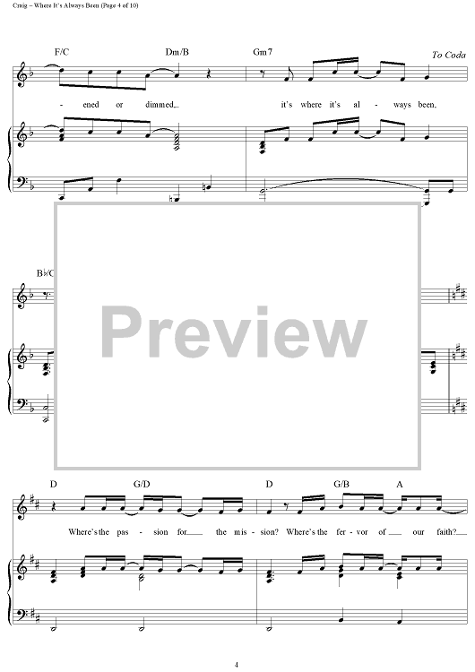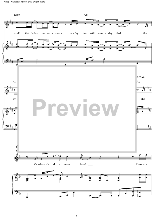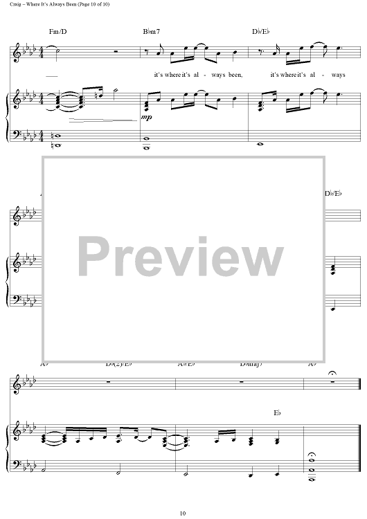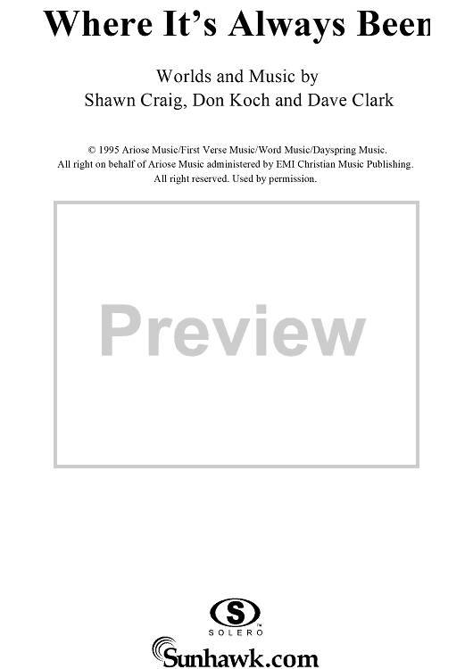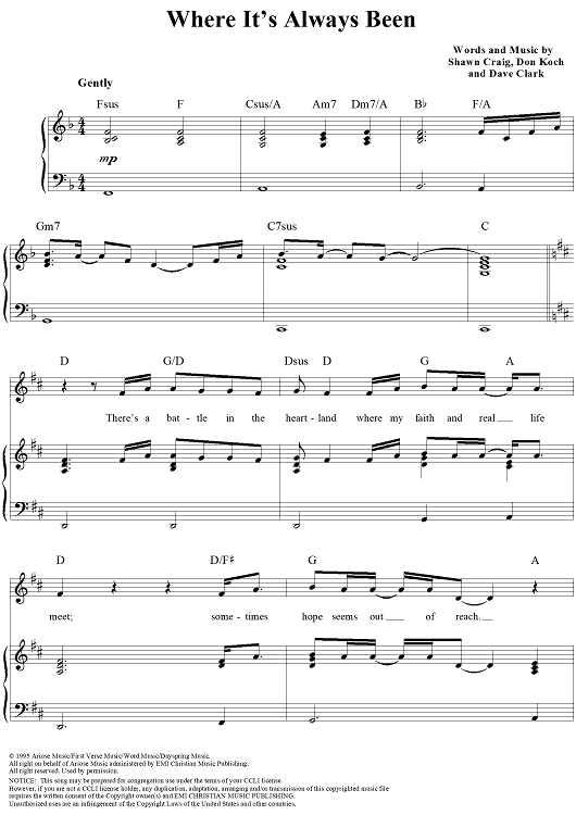 Digital Sheet Music for Where It's Always Been by Shawn Craig, Don Koch, Dave Clark, Phillips, Craig and Dean scored for Piano/Vocal/Chords; id:116004