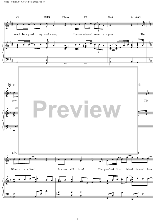 "Where It's Always Been" Sheet Music by Phillips, Craig and Dean