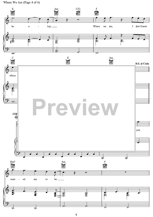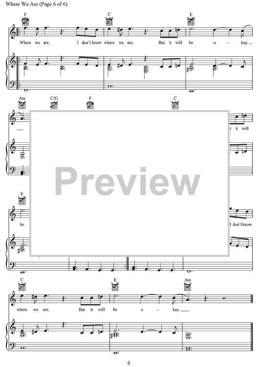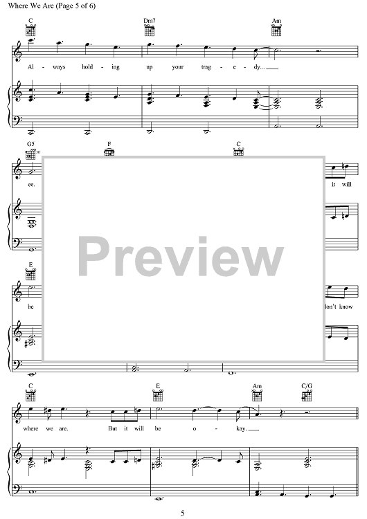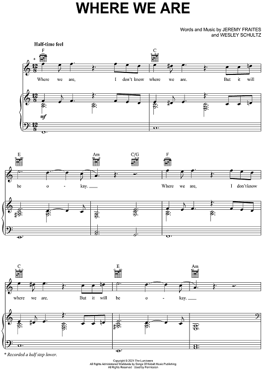 Digital Sheet Music for Where We Are by Jeremy Fraites, Wesley Schultz, The Lumineers scored for Piano/Vocal/Chords; id:470669