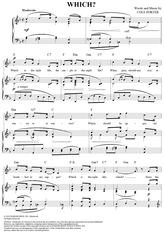 Digital Sheet Music for Which? by Cole Porter scored for Piano/Vocal/Chords; id:320989