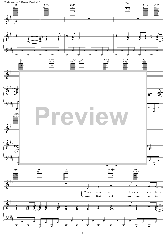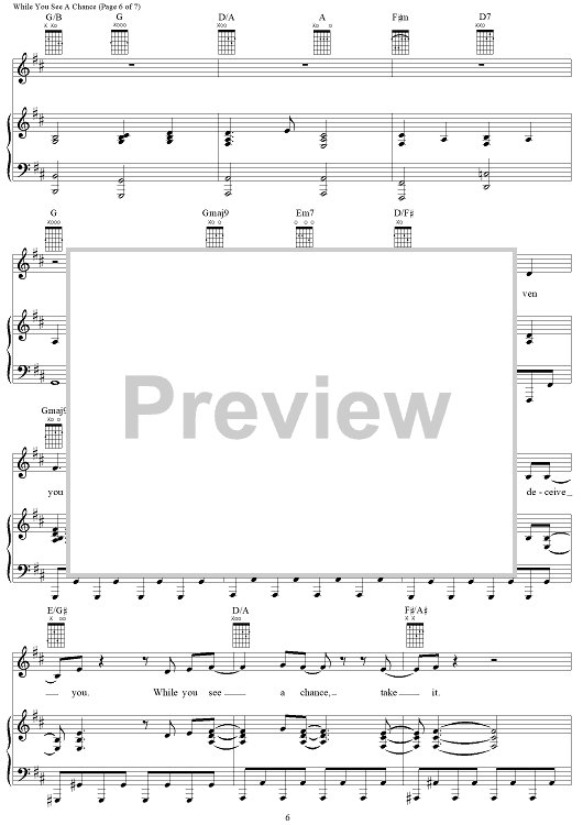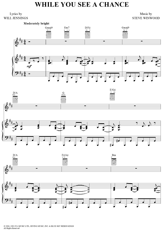 Digital Sheet Music for While You See a Chance by Will Jennings, Steve Winwood scored for Piano/Vocal/Chords; id:114034