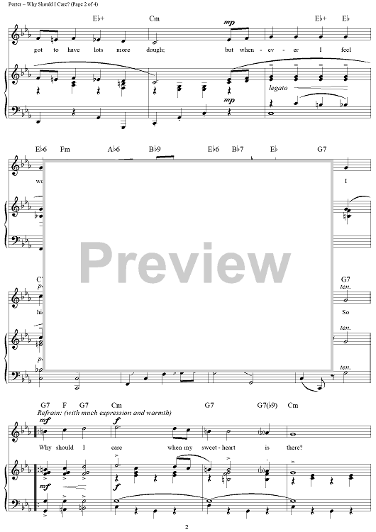 Digital Sheet Music for Why Should I Care? by Cole Porter scored for Piano/Vocal/Chords; id:320787