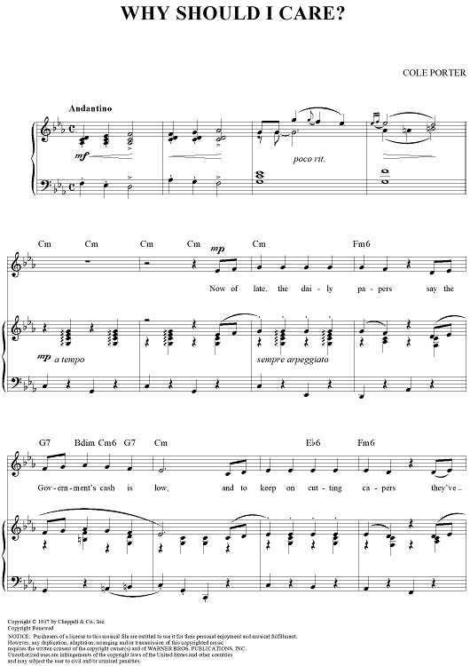 "Why Should I Care?" Sheet Music by Cole Porter