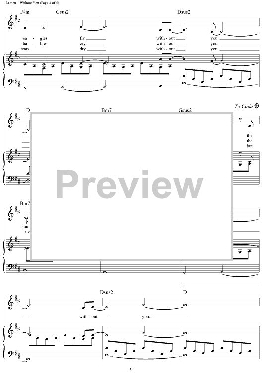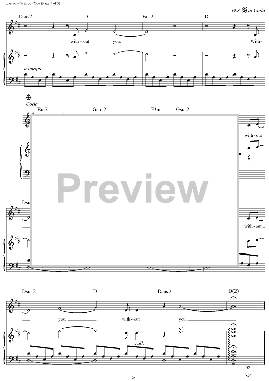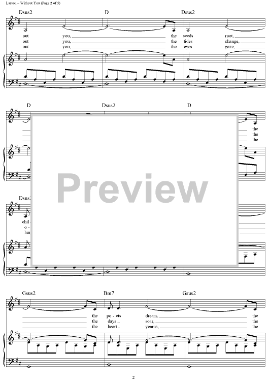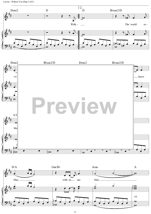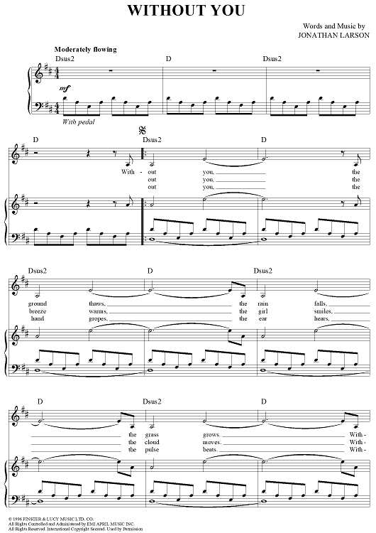 Digital Sheet Music for Without You by Jonathan Larson scored for Piano/Vocal/Chords; id:362987