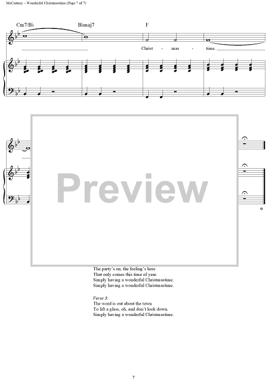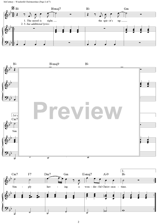 Digital Sheet Music for Wonderful Christmastime by Paul McCartney scored for Piano/Vocal/Chords; id:366700
