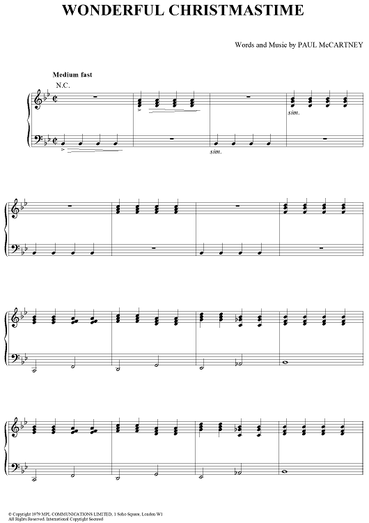 "Wonderful Christmastime" Sheet Music by Paul McCartney