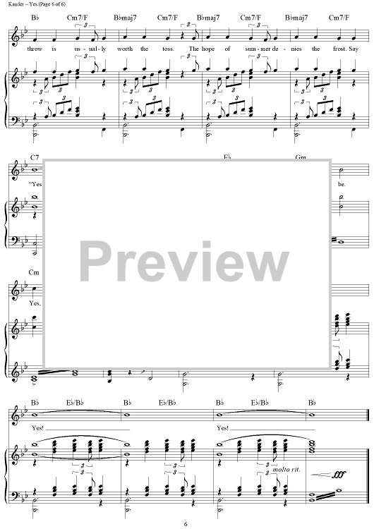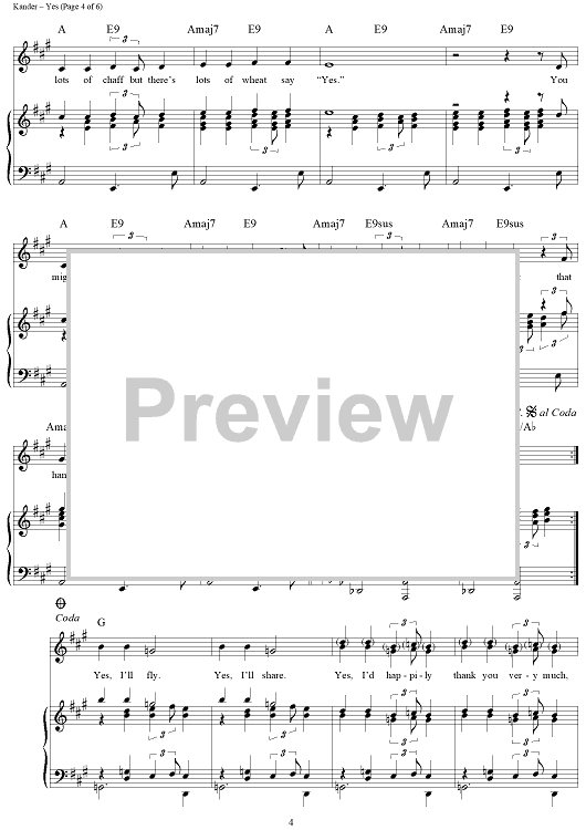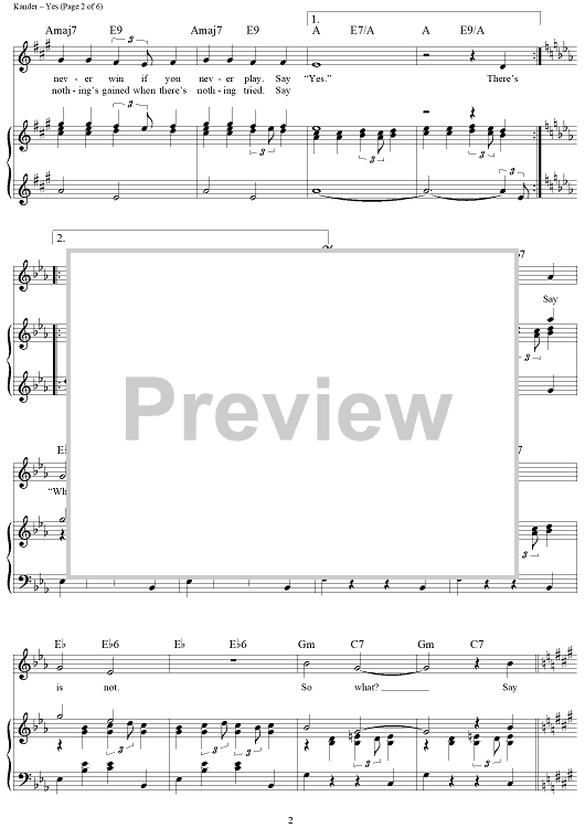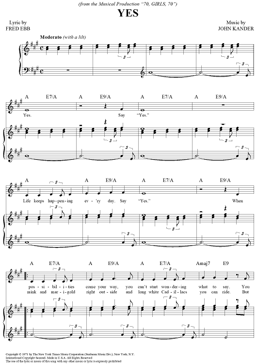 Digital Sheet Music for Yes by John Kander, Fred Ebb scored for Piano/Vocal/Chords; id:366036