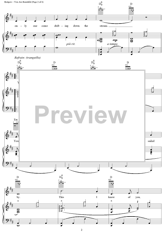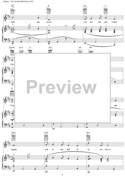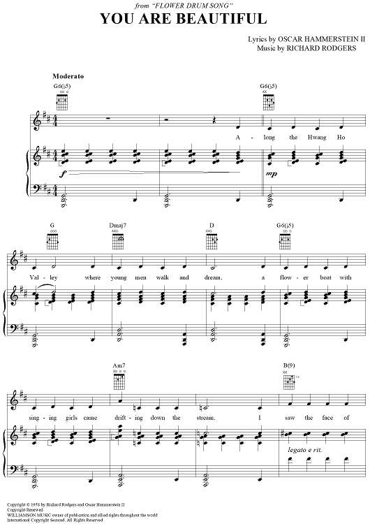 Digital Sheet Music for You Are Beautiful by Richard Rodgers, Oscar Hammerstein II scored for Piano/Vocal/Chords; id:403291