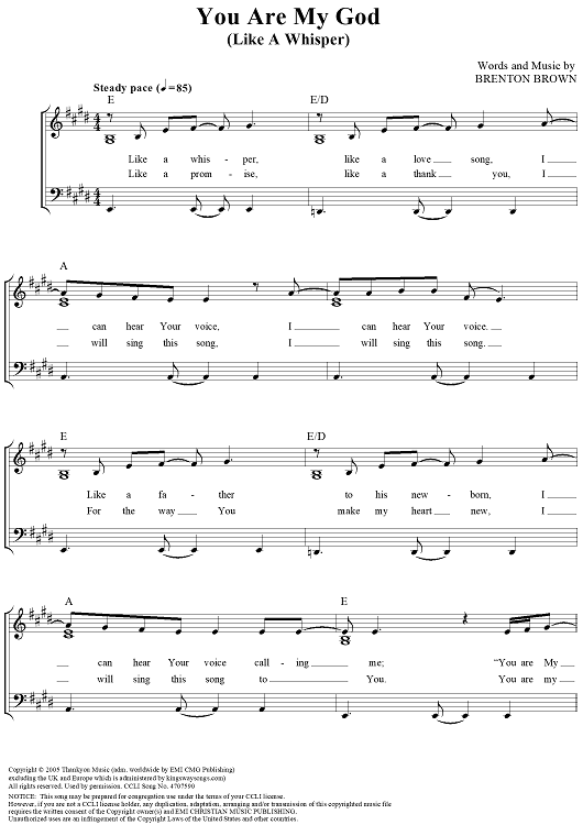Digital Sheet Music for You Are My God (Like a Whisper) by Brenton Brown scored for Piano/Vocal/Chords; id:360809