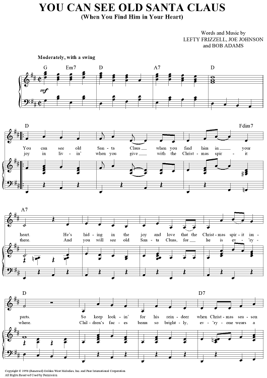 Digital Sheet Music for You Can See Old Santa Claus (When You Find Him In Your Heart) by Gene Autry, Lefty Frizzell, Joe Johnson, Bob Adams scored for Piano/Vocal/Chords; id:444679