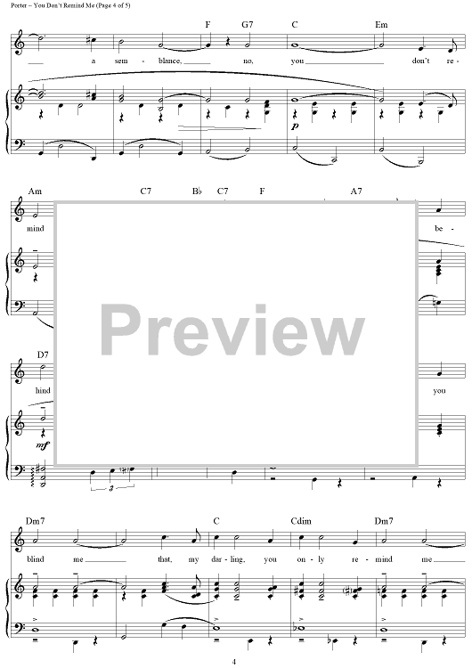 Digital Sheet Music for You Don't Remind Me by Cole Porter scored for Piano/Vocal/Chords; id:313906