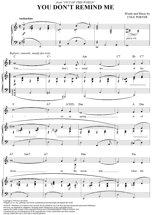 "You Don't Remind Me" Sheet Music by Cole Porter