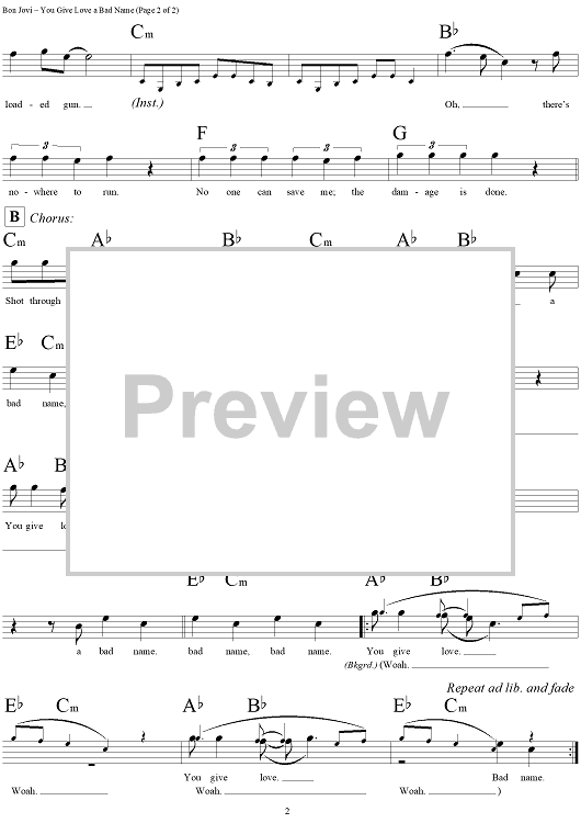 Digital Sheet Music for You Give Love a Bad Name by Bon Jovi, Richie Sambora, Desmond Child, Jon Bon Jovi, Blake Lewis scored for Lead Sheet; id:293827