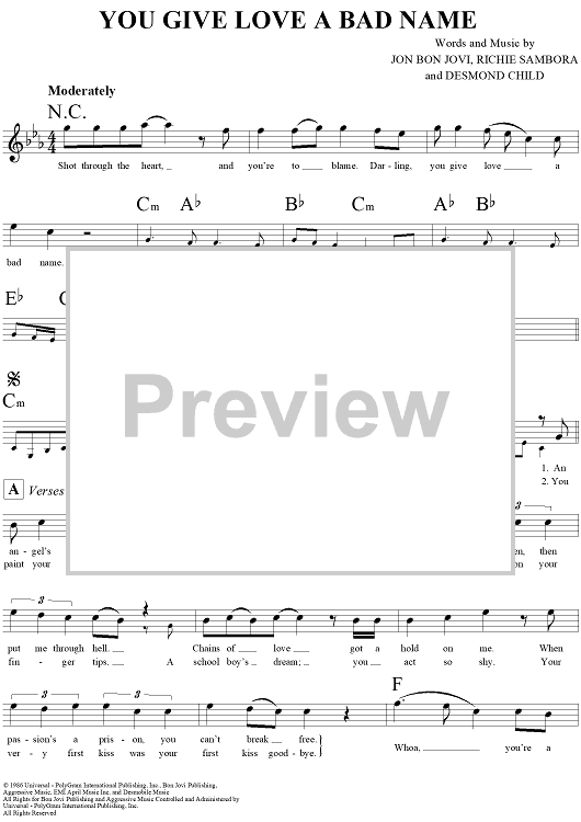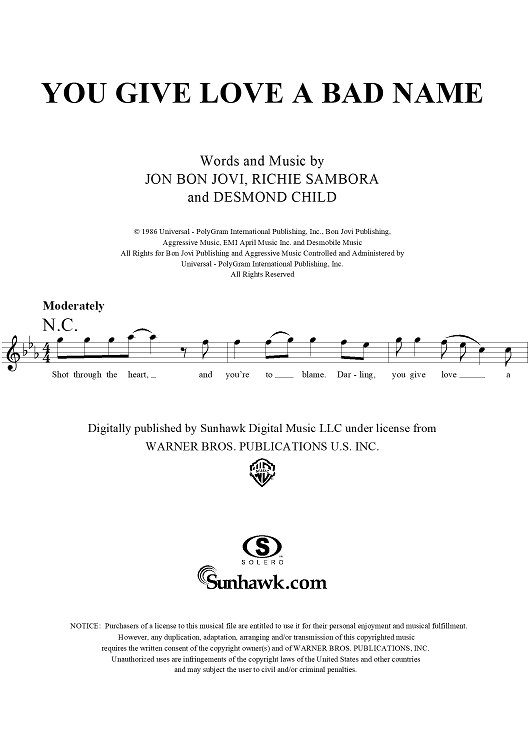 "You Give Love a Bad Name" Sheet Music by Bon Jovi