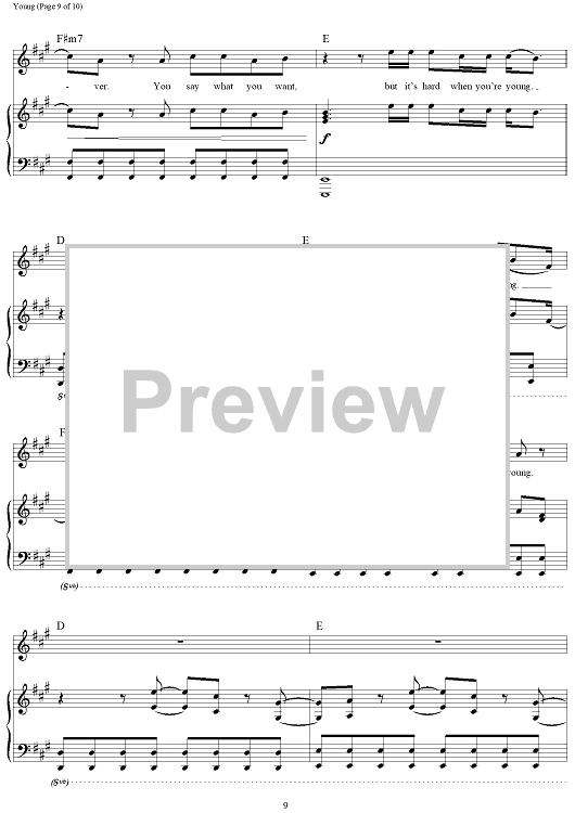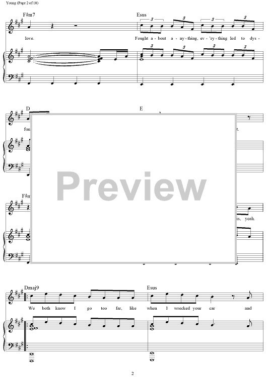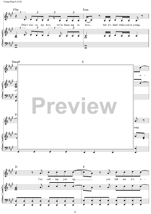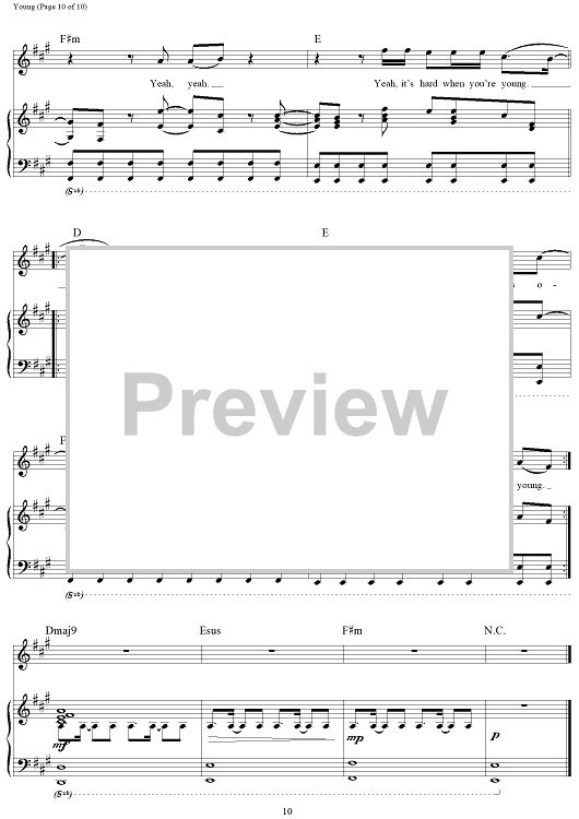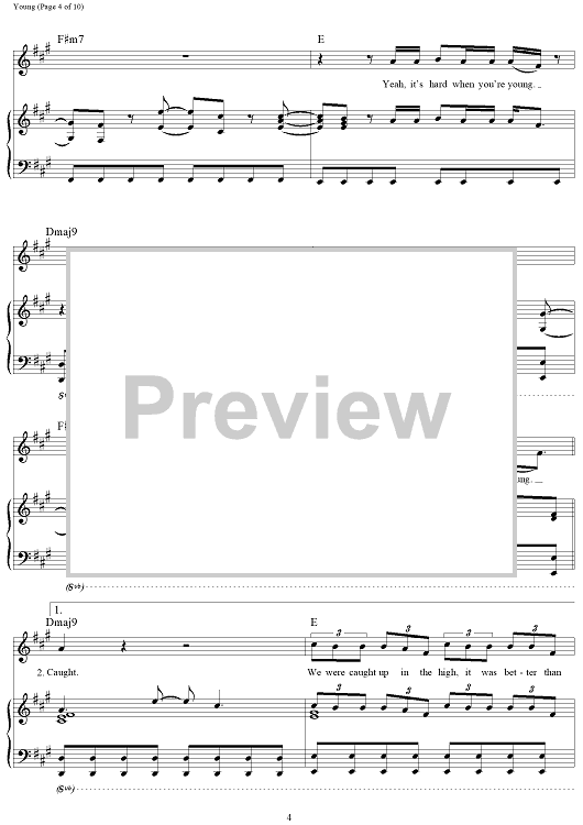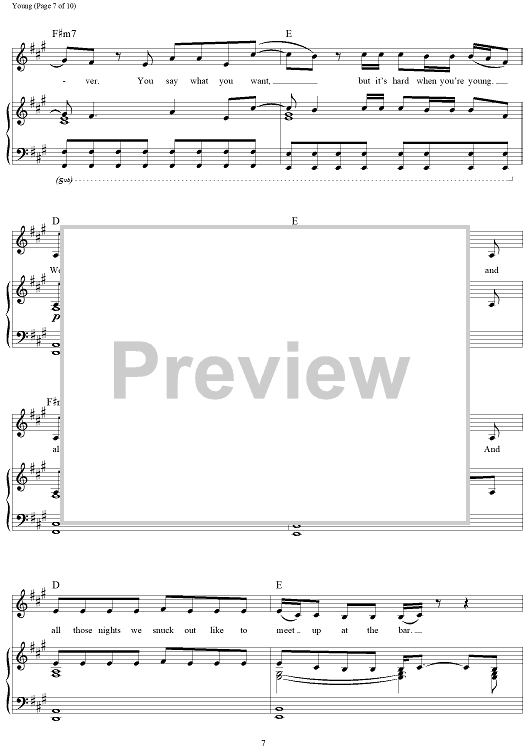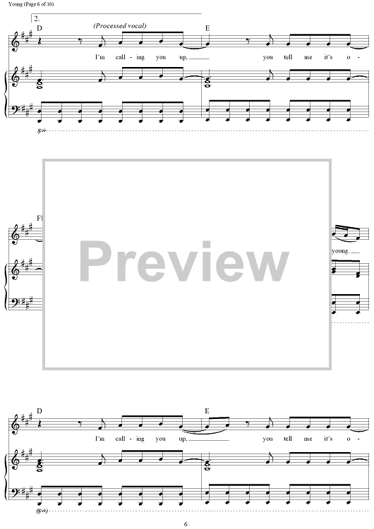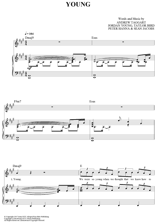 Digital Sheet Music for Young by Andrew Taggart, The Chainsmokers, Taylor Bird, Peter Hanna, Jordan Young, Sean Jacobs scored for Piano/Vocal/Chords; id:465518