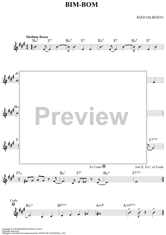 Digital Sheet Music for Bim-Bom by Joao Gilberto scored for Lead Sheet; id:445171