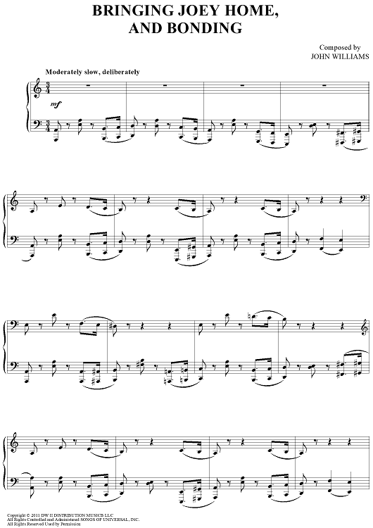 "Bringing Joey Home, And Bonding" Sheet Music by John Williams