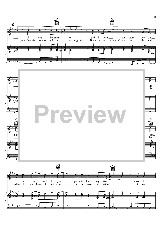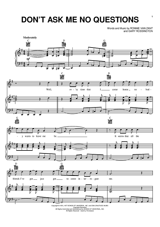 Digital Sheet Music for Don't Ask Me No Questions by Lynyrd Skynyrd, Gary Rossington, Ronnie Van Zant scored for Piano/Vocal/Chords; id:381601