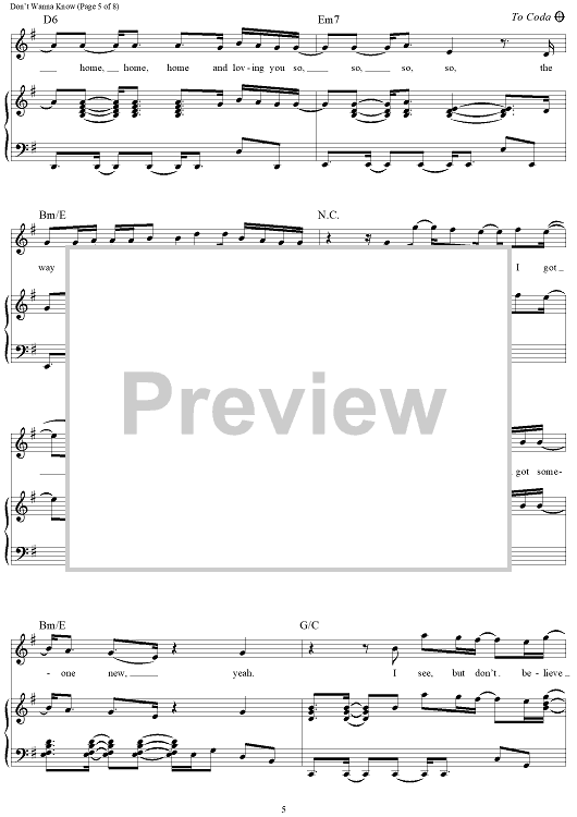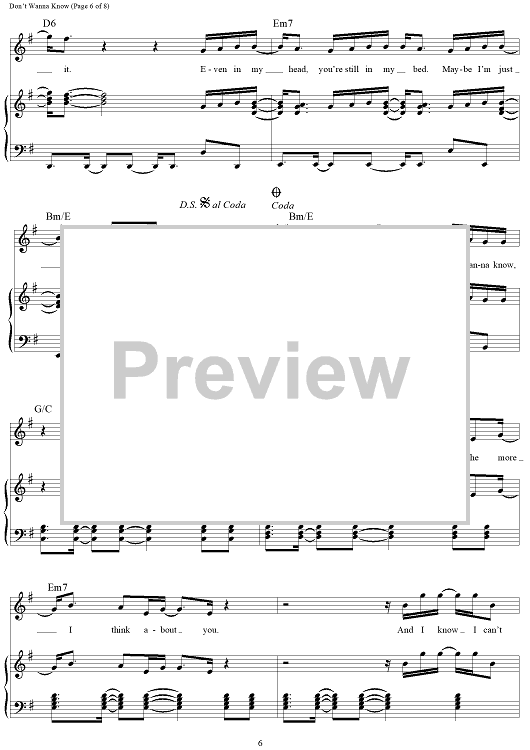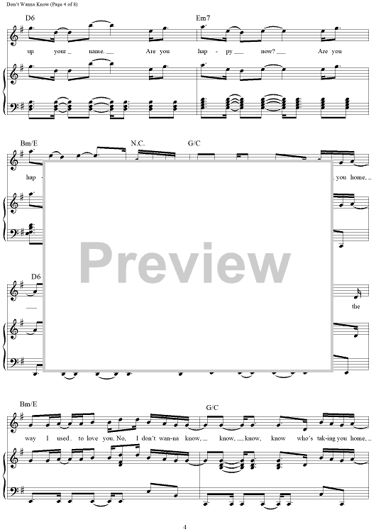 "Don't Wanna Know" Sheet Music by Maroon 5