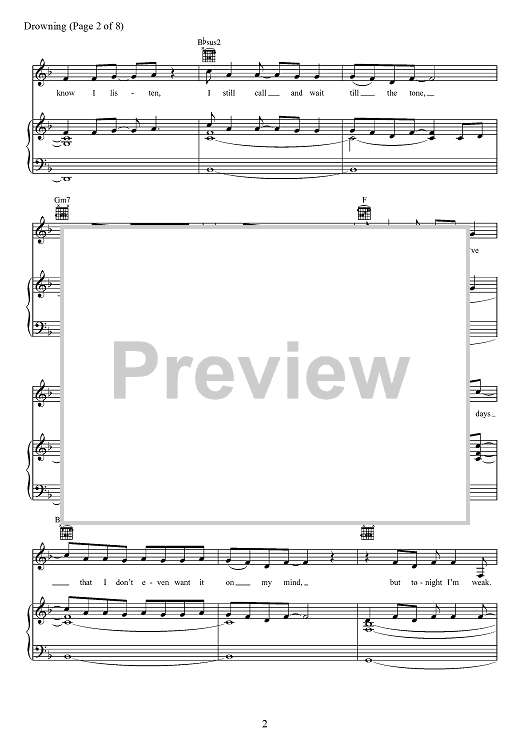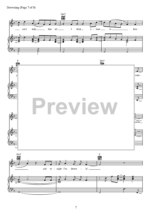 Digital Sheet Music for Drowning by Chris Young, Josh Hoge, Corey Crowder scored for Piano/Vocal/Chords; id:467727
