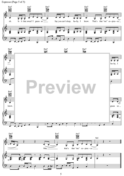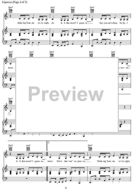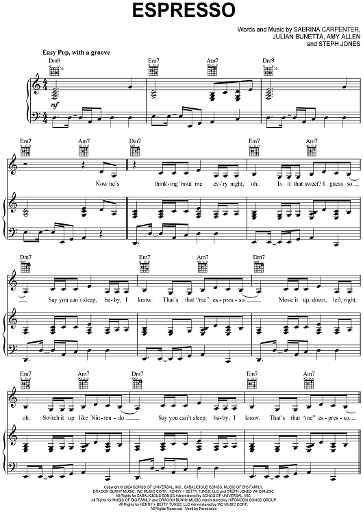 Digital Sheet Music for Espresso by Julian Bunetta, Sabrina Carpenter, Amy Allen, Steph Jones scored for Piano/Vocal/Chords; id:502042