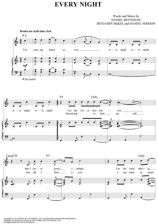 Digital Sheet Music for Every Night by Daniel Reynolds, Benjamin McKee, Daniel Sermon, Imagine Dragons scored for Piano/Vocal/Chords; id:439713