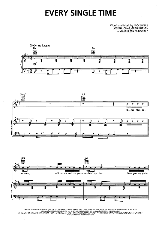 Digital Sheet Music for Every Single Time by Joseph Jonas, Jonas Brothers, Greg Kurstin, Nick Jonas, Maureen McDonald scored for Piano/Vocal/Chords; id:467862