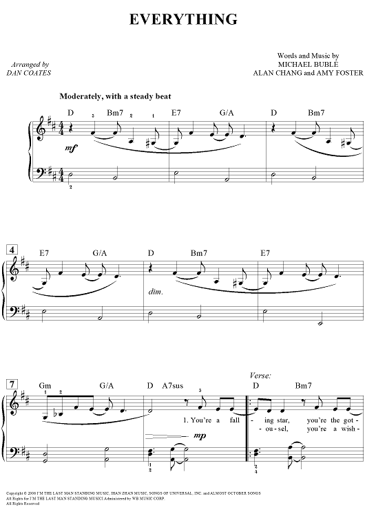 Digital Sheet Music for Everything by Dan Coates, Michael Buble, Alan Chang, Amy S. Foster scored for Easy Piano; id:457406