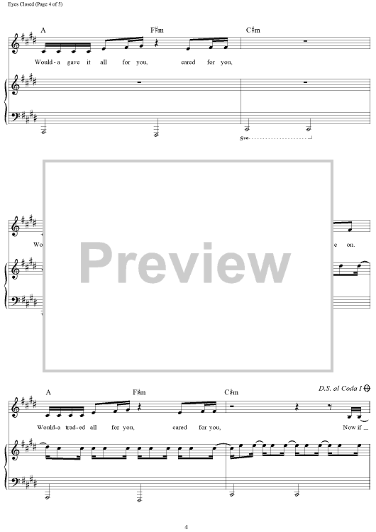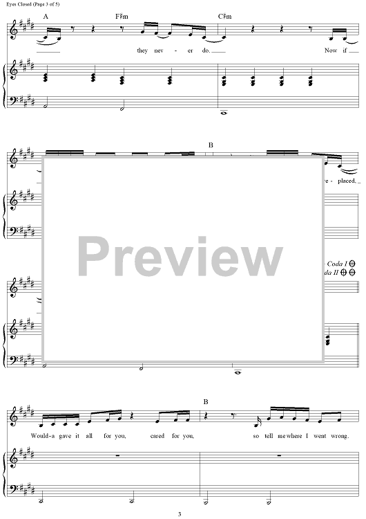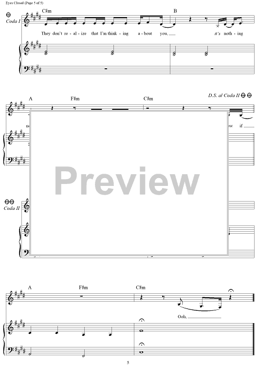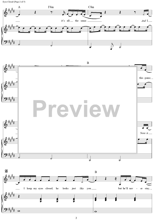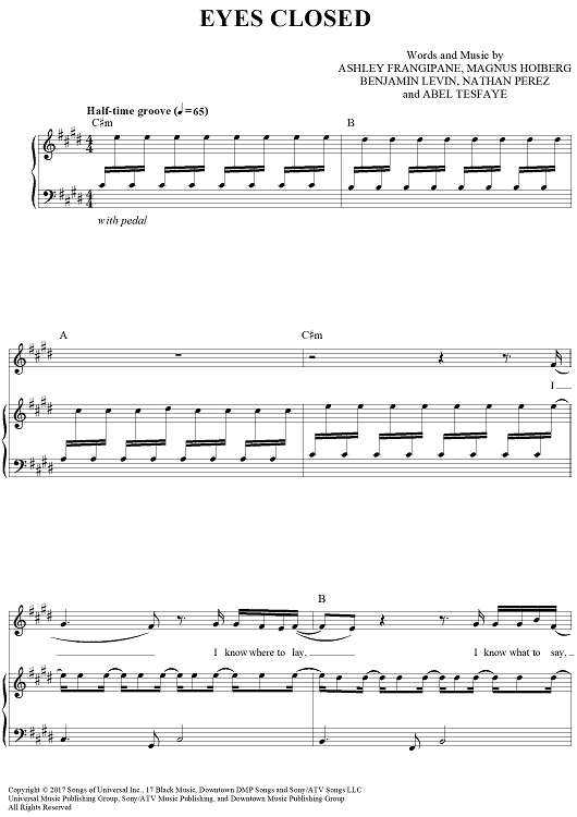 Digital Sheet Music for Eyes Closed by Nathan Perez, Abel Tesfaye, Ashley Frangipane, Magnus Hoiberg, Happy Perez, Halsey scored for Piano/Vocal/Chords; id:464850