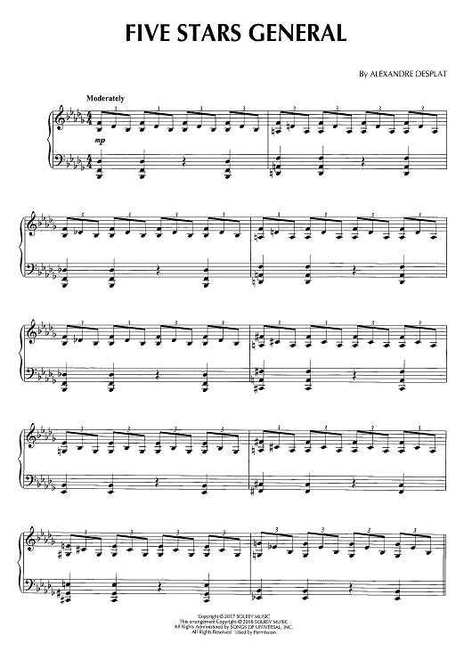 Digital Sheet Music for Five Star General - from The Shape Of Water by Alexandre Desplat scored for Piano Solo; id:466583