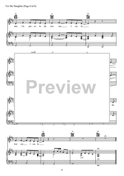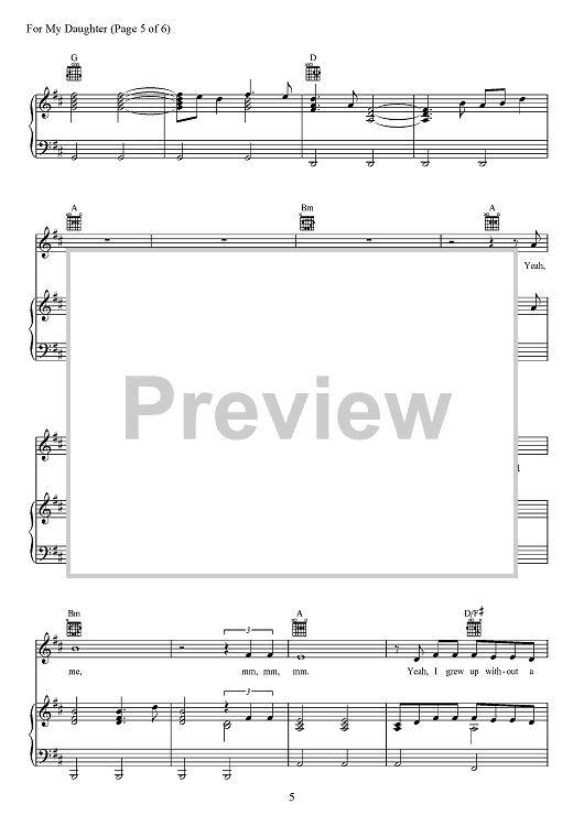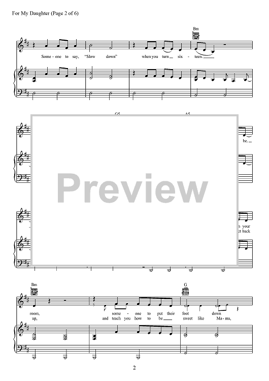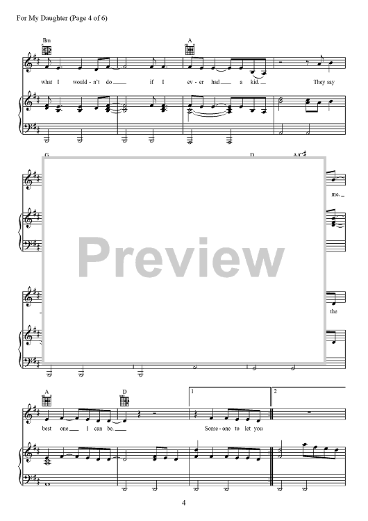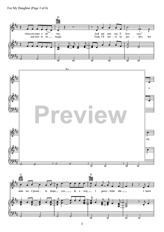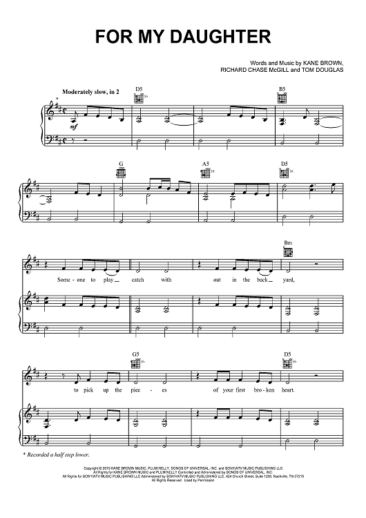 Digital Sheet Music for For My Daughter by Tom Douglas, Kane Brown, Richard McGill scored for Piano/Vocal/Chords; id:467889