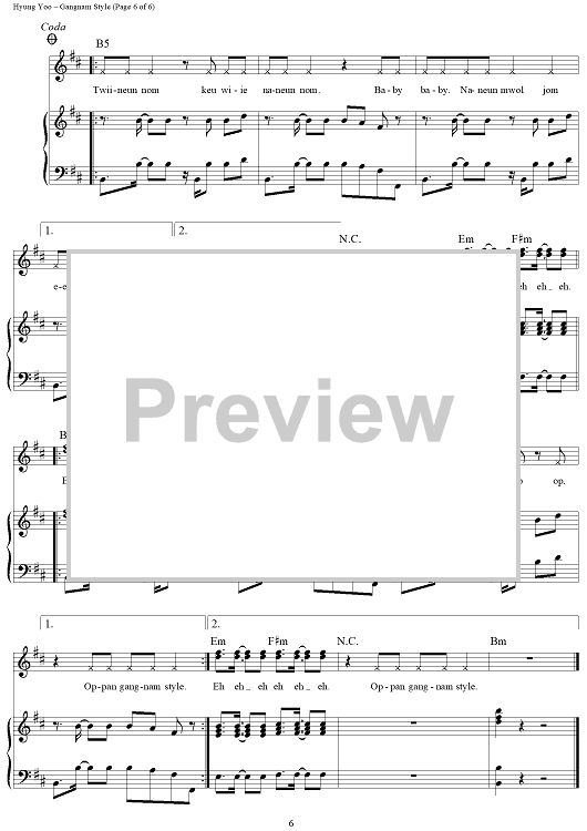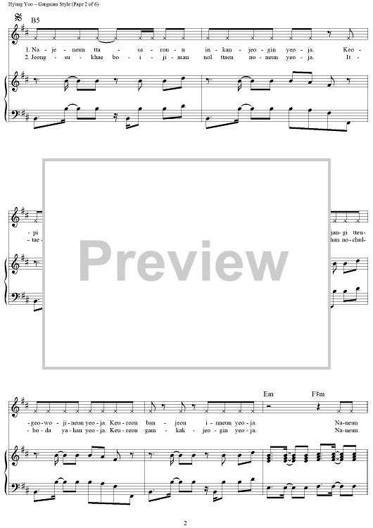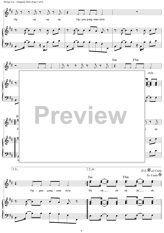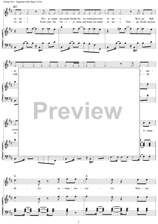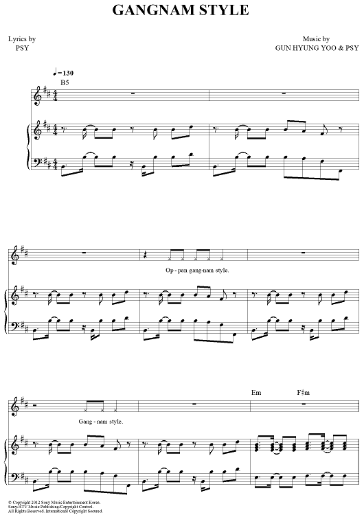 Digital Sheet Music for Gangnam Style by PSY, Gun Hyung Yoo scored for Piano/Vocal/Chords; id:433006