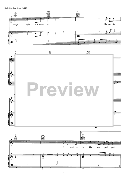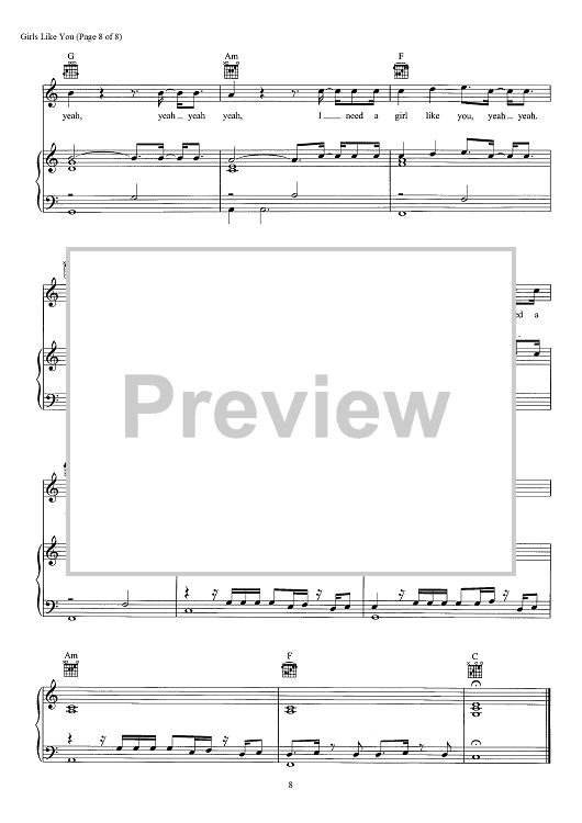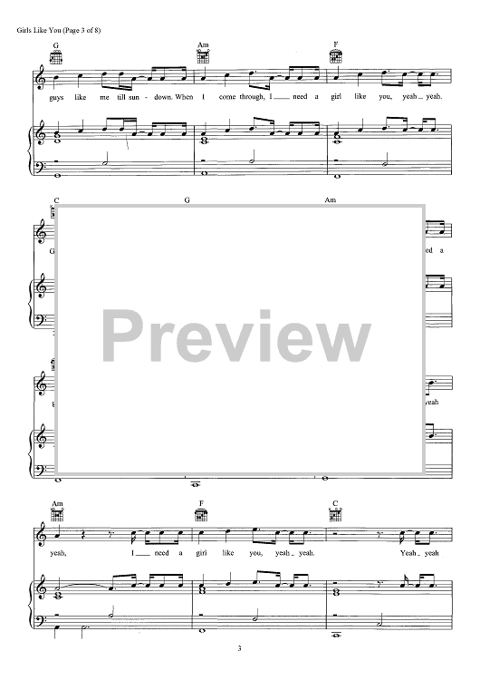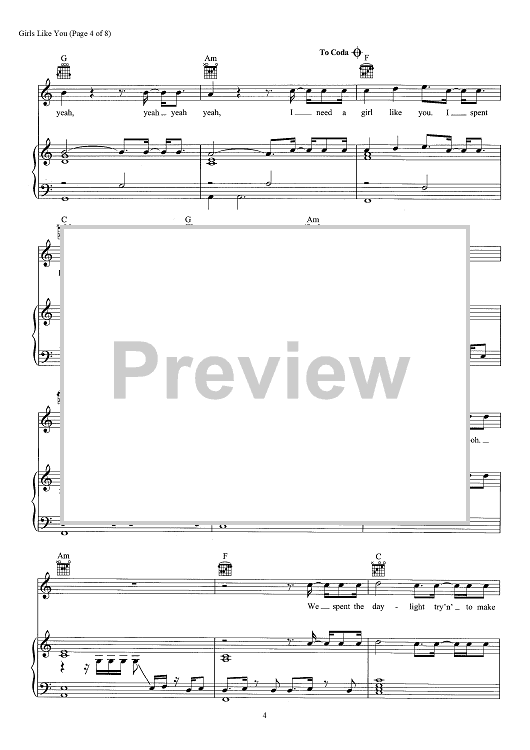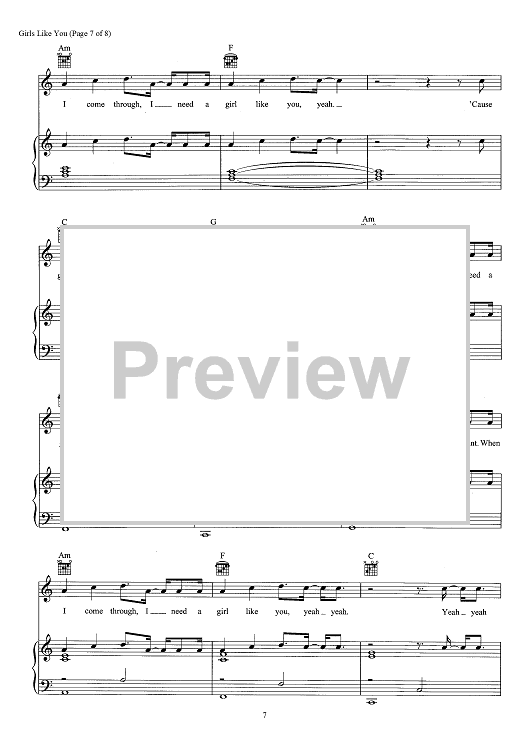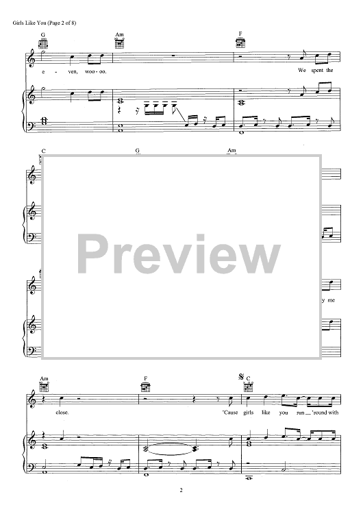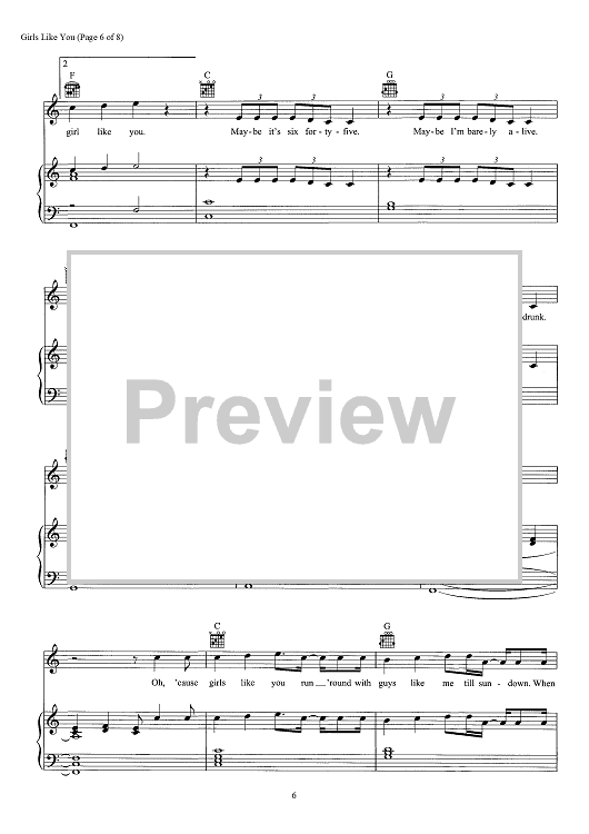 Digital Sheet Music for Girls Like You by Adam Levine, Maroon 5, Jason Evigan, Henry Russell Walter, Brittany Hazzard scored for Piano/Vocal/Chords; id:466274