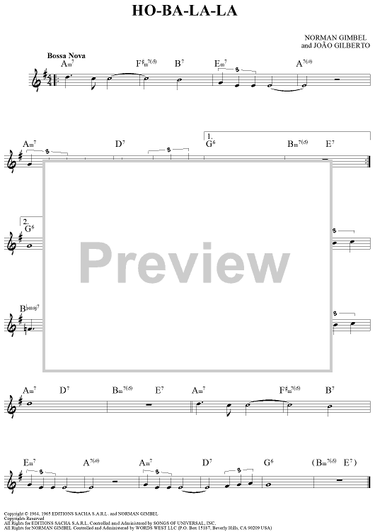 Digital Sheet Music for Ho-Ba-La-La by Norman Gimbel, Joao Gilberto scored for Lead Sheet; id:448995