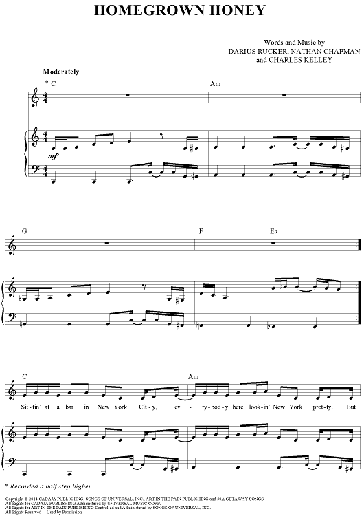 Digital Sheet Music for Homegrown Honey by Darius Rucker, Charles Kelley, Nathan Chapman scored for Piano/Vocal/Chords; id:449069